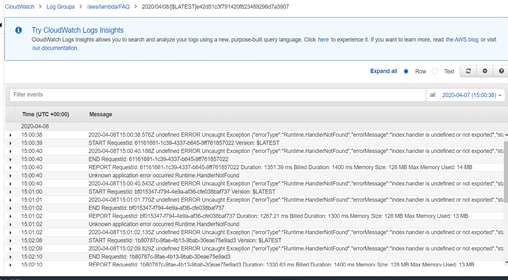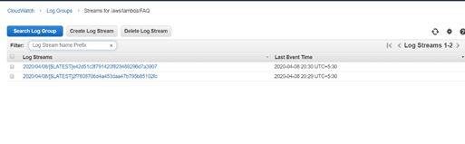 10. In the Execution result: succeeded window, expand details. Click Monitoring tab à view logs in CloudWatch. Click on any one log streams, the same event data of Lambda Console will be displayed there.