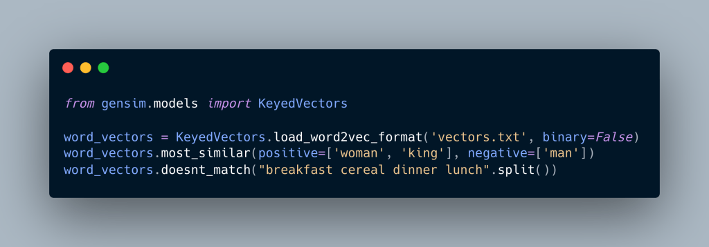 Word2vec algorithm maps each word to high-quality distributed vectors using a neural networks model . The resulting vector representation of a word is called a word embedding. If two words are semantically similar then their vectors will also be close to each other(in n-dimesional plane), this is how word embeddings capture the semantic relationships between the words. Word2vec algorithm is useful for NLP tasks, such as sentiment analysis, recommendation systems, named entity recognition, web translation service etc.