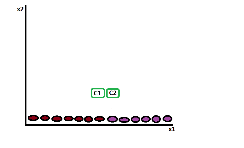 | x1 | x2 | Centroid 1 | Centroid 2 |