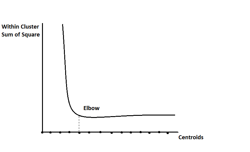 Now at last: who decides the k value? In the above example, we took 2 as the value of k, but in real life, it doesn’t happen like this. To decide the number of centroids or k value, we use the Elbow method: