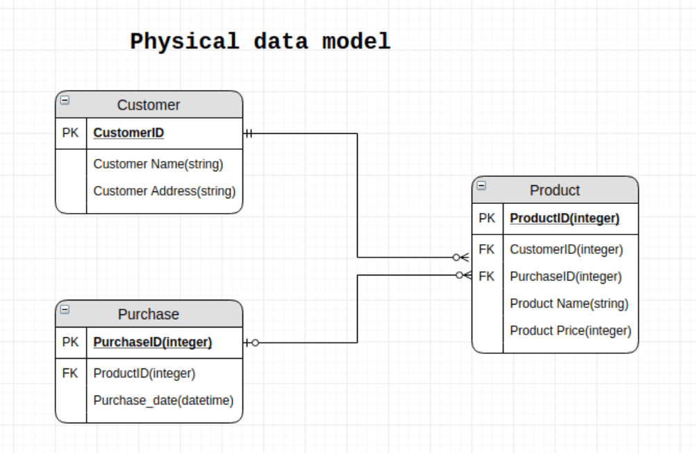 This is a schema or framework defining how data is physically stored in a database. It is used for database-specific modeling where the columns include exact types and attributes. A physical model designs the internal schema. The purpose is the actual implementation of the database.