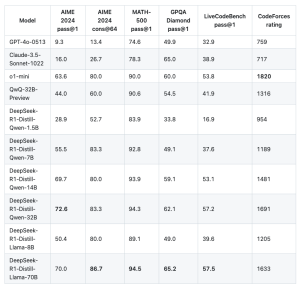 Comparison of DeepSeek-R1 distilled models with other similar models on reasoning-based benchmarks(https://www.vellum.ai/blog/the-training-of-deepseek-r1-and-ways-to-use-it )