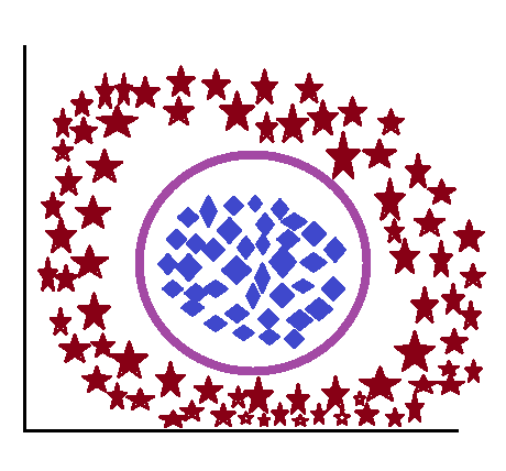 To overcome this, we use Kernel. A kernel is a mathematical trick used to draw a decision boundary in complex and nonlinearly separable data. In this Kernel increase the increased dimensional space, since it’s now possible to find a hyperplane, also known as a decision boundary, that can separate the groups of classes easily and efficiently. However, the hyperplane created, will not be a straight line; instead, it will be a curved line.