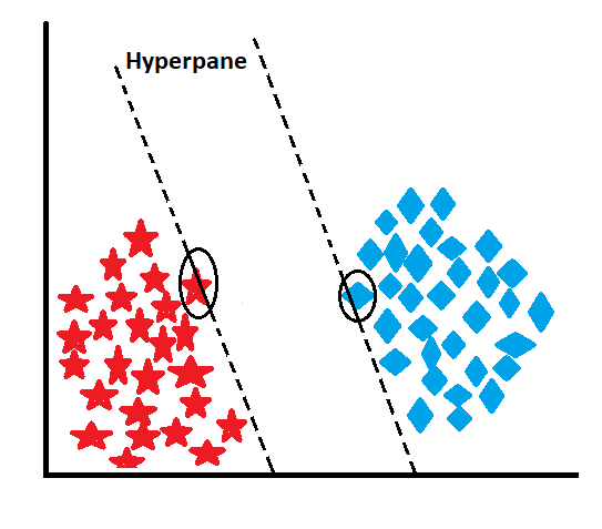 In SVM, the support vectors are the data points that are closest to the actual decision boundary. They play a crucial role in defining the hyperplane. For each support vector, there is an “imaginary” hyperplane associated with it. These imaginary hyperplanes “travel” from the support vectors toward the actual decision boundary.