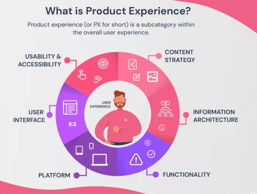 Product experience (PX) is the perception of the product and its features.