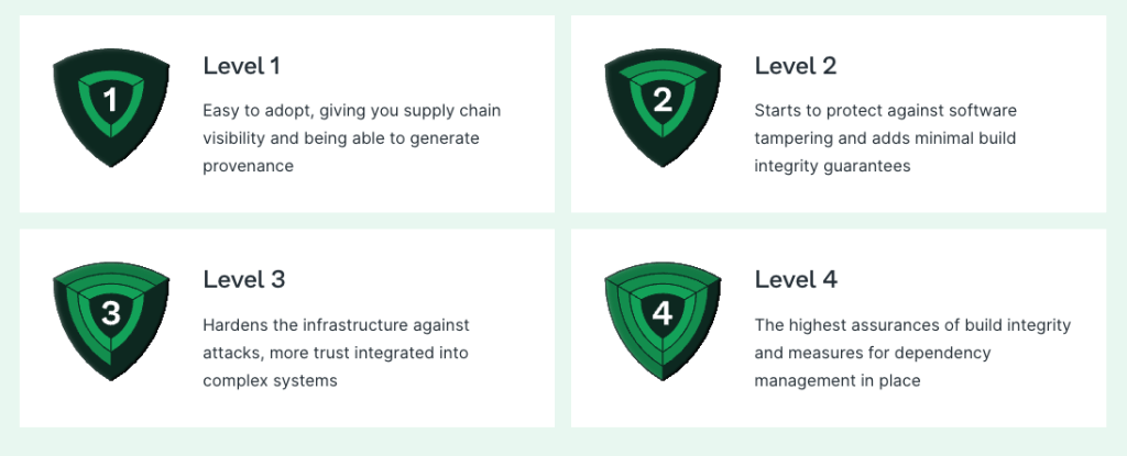 When discussing how secure software, supply chains, and their individual components really are, SLSA levels act as a shared vocabulary. The levels combine industry-recognized best practices from the source to the system to produce four compliance levels of increasing assurance. In these, the builds, sources, and dependencies of open-source or for-profit software are examined. SLSA means targeted, doable steps to stop unauthorized software modifications, as well as a plan to harden that security over time. It starts with simple, fundamental steps at the lower levels to build up and guard against complex threats later.
