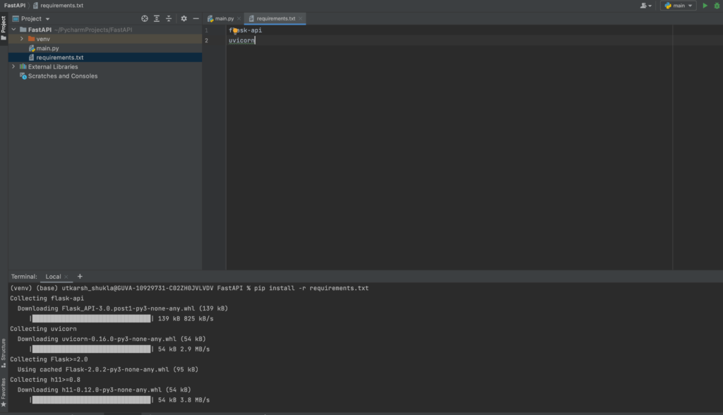 - Let’s install all the packages at one – pip install -r requirements.txt, this command will install the packages that are present in the requirements.txt file.
