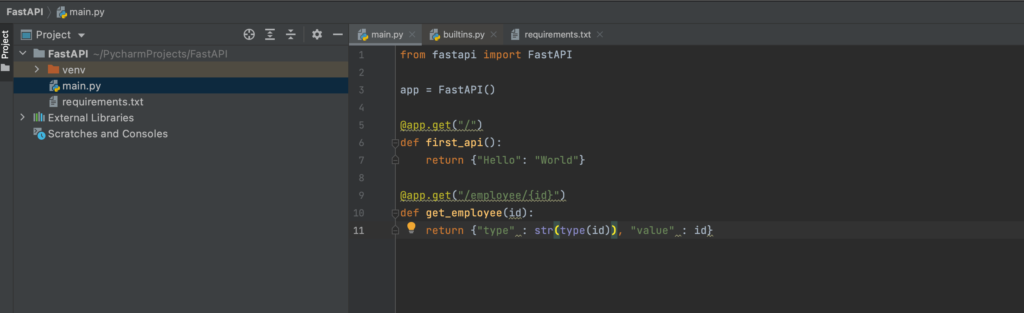 - Let’s create a folder named FastAPI, in it, we are going to have the main file and a requirement.txt file.