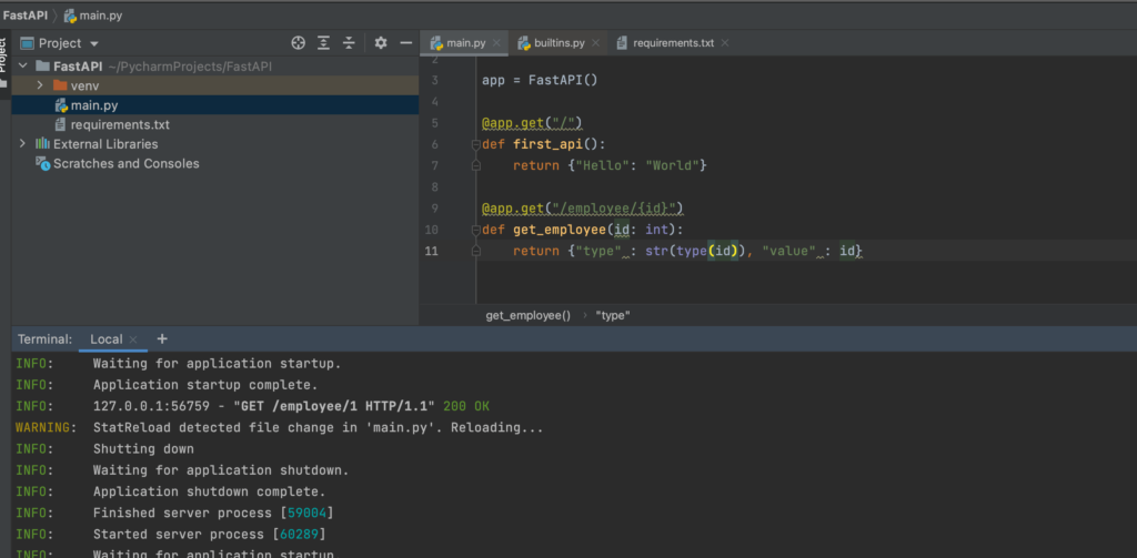 - so for that we just need to update our app.get() to app.get(‘/employee/{id}’), so for the dynamic path, we use {} braces.
