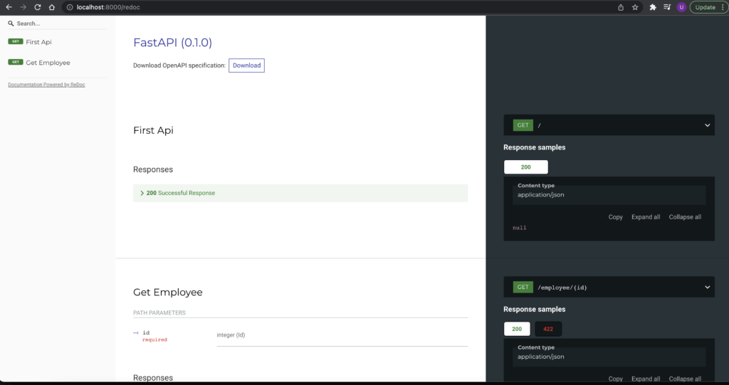- ReDocs is also provided if someone doesn’t want to use the swagger.