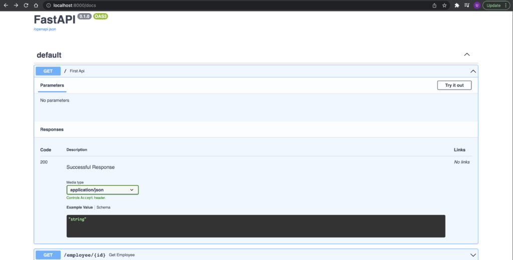 - For connecting to the swagger – we just need to go the docs URL, that is – http://localhost:8000/docs