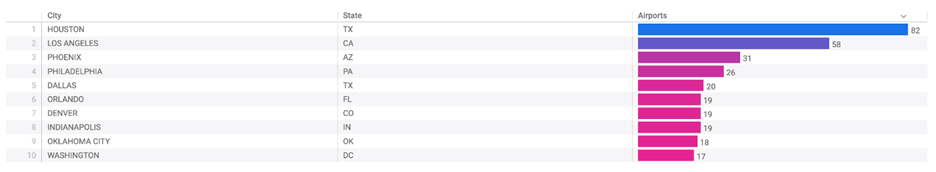 Figure 1: Most Heliports by State and City