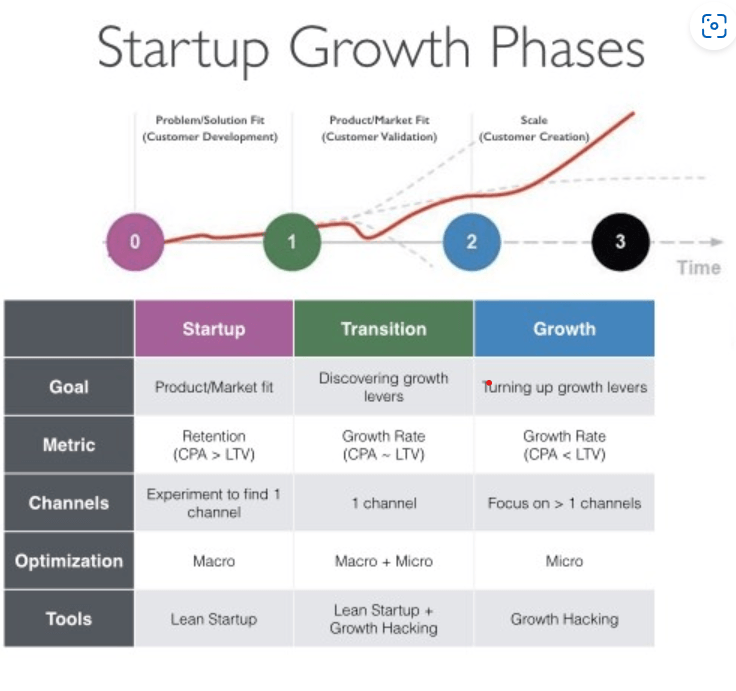 - Once the idea is validated, the next stage is to launch the product or service and start growing the business. This stage involves building a team, developing a marketing strategy, and scaling the business.