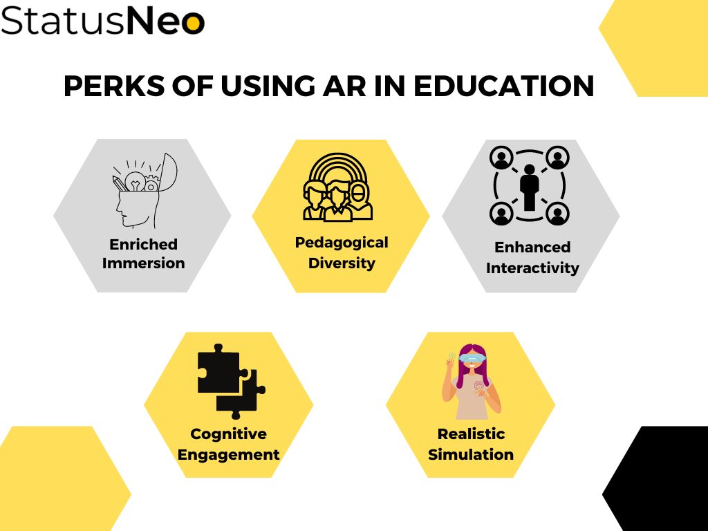 - Enriched Immersion: AR presents a multi-sensory experience that immerses learners in a simulated environment, augmenting their perception of the real world.