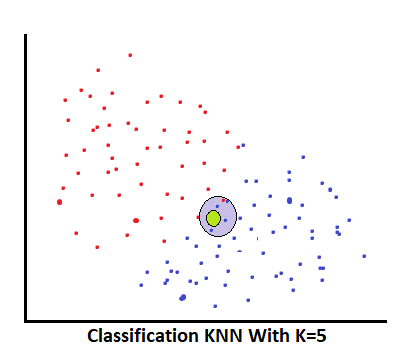 K-Nearest Neighbor’s name itself gives a hint about the working strategy. This algorithm finds the closest data points based on inputs. Now how many neighbors are needed to compare for predicting the result is decided by the “K” value. K is nothing but the number of neighbors; how much k value we give that much neighbors is going to select, and those are should be more closely input data point. Suppose K = 5, which we have taken, and then the algorithm finds 5 too-close neighbors that are near that input data point in the distance. Now, once you have selected the top 5 neighbors, find out the majority between neighbors in the case of classification or the mean in the case of regression. This majority, or mean, is the result of that input data point.