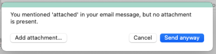 Also, in Microsoft Outlook, if we write the sentence: “pls find the attached” or word “ attached” in the mail and if we forgot to attach to anything, the system will throw an error: “Attachment is missing”.