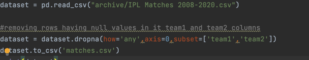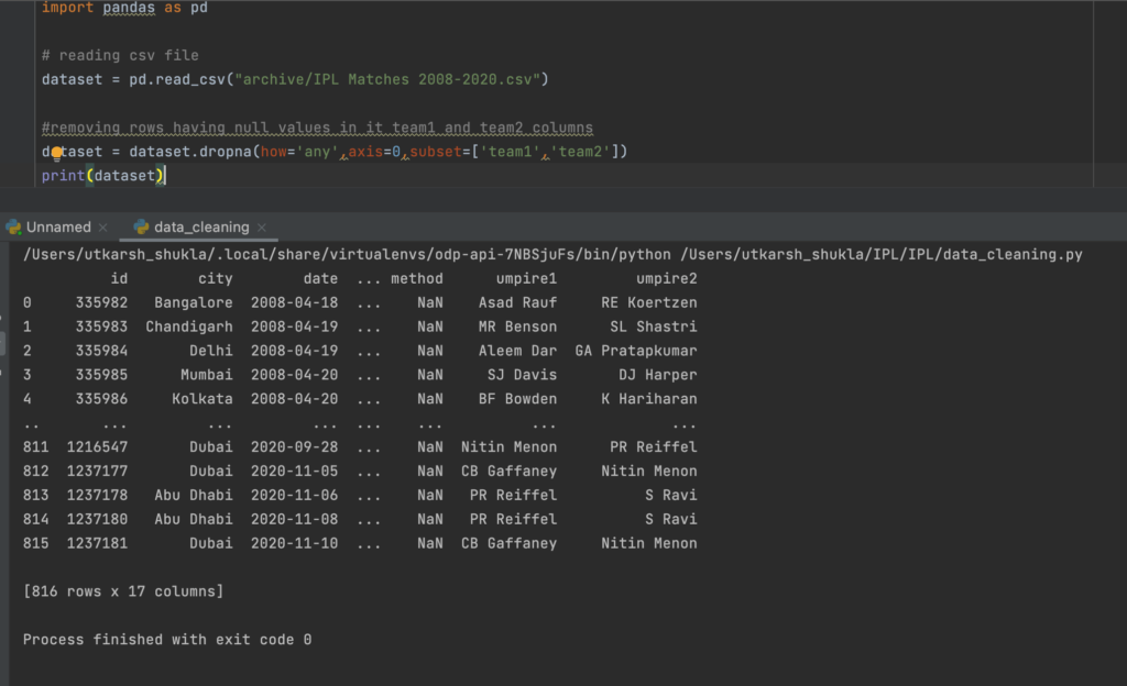 - So for cleaning purposes let’s first remove the null values from the dataset.