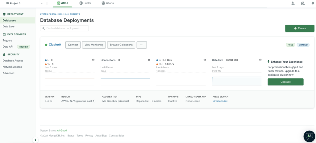 - Let’s see the MongoDB cloud console and see how the data is looking there.