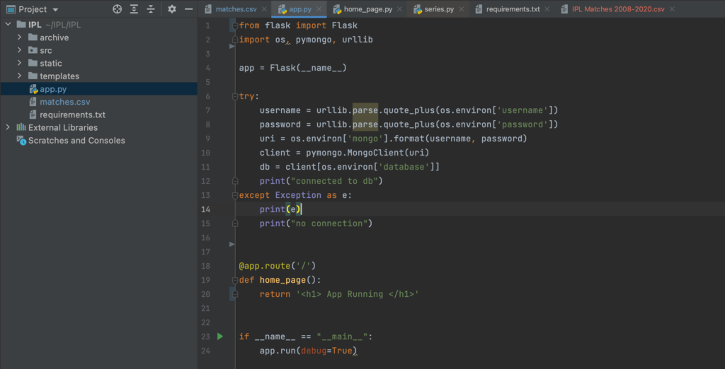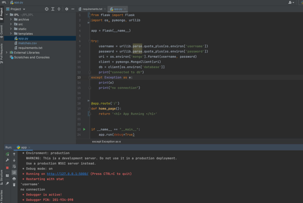 - Lets run our app, by running the app.py file, in this file we created the connection with MongoDB.