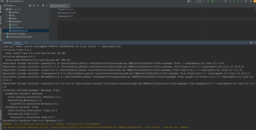 - We need to run pip install -r requirements.txt, it will install all our required packages.