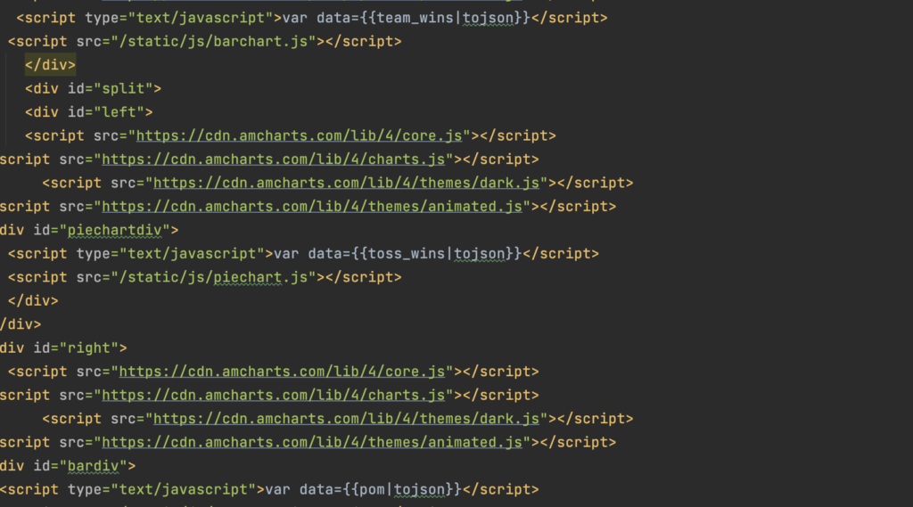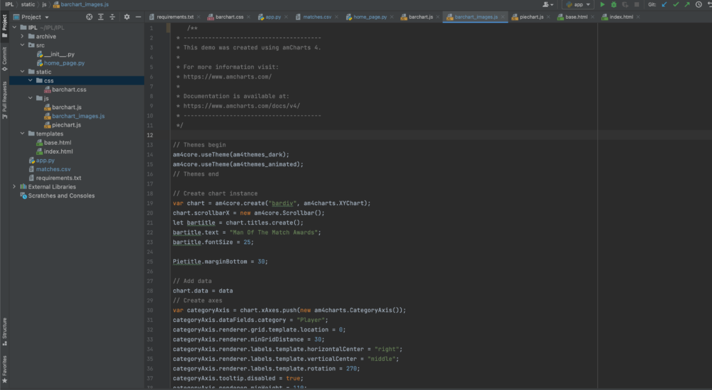 - Let’s have the bar charts and pie chart code from amcharts4 and add it to our js directory under static.