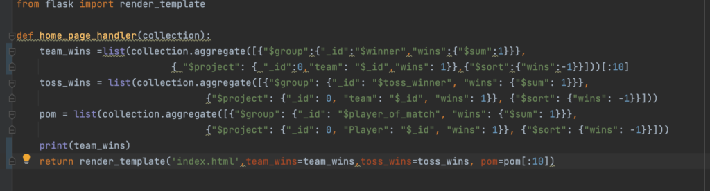 IPL(Indian Premier League) Dashboard using Flask, AmCharts, and MongoDB