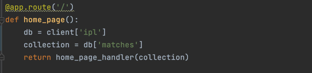 - app.route is the URL that will initiate the function, by default the home page will be opened.