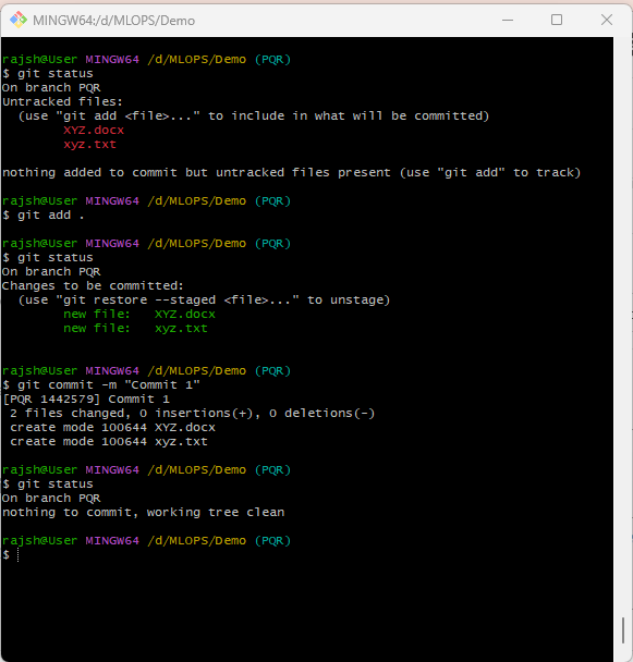 Load the track files in the repository, and files from the staging area to the repository. The ‘git commit -m’ command is used to record the changes you’ve staged in the staging area and save them as a new commit in your git repository. The primary purpose of ‘git commit -m’ is to create a new commit with a descriptive message summarizing the changes made in that commit.