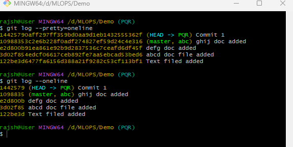- ‘–pretty=oneline’ is an option that customizes the output format of the commit history. Specifically, it formats the commit information to display each commit as a single line, providing a concise overview of the commit history.