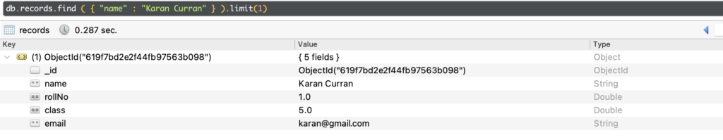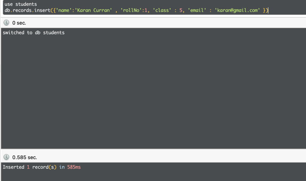 - Let’s begin with create operation, we are going to create a collection of students with their name, roll number, class, and email.