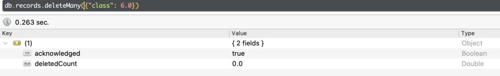- Now coming to delete query, delete query can be used as db.records.deleteOne({“key”:”value”}), this will erase only the first matching record.