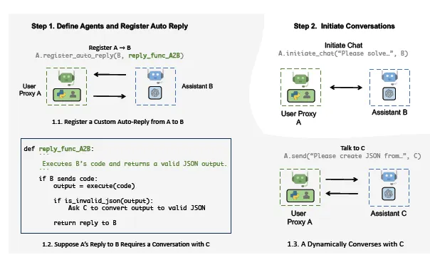 Flexibility is a core feature of AutoGen. It allows the definition of unique roles for each agent and sets the behavior of their interactions. The framework supports the integration of the most advanced Large Language Models (LLMs), such as GPT-4. This integration with state-of-the-art LLMs enhances performance while addressing their inherent limitations.