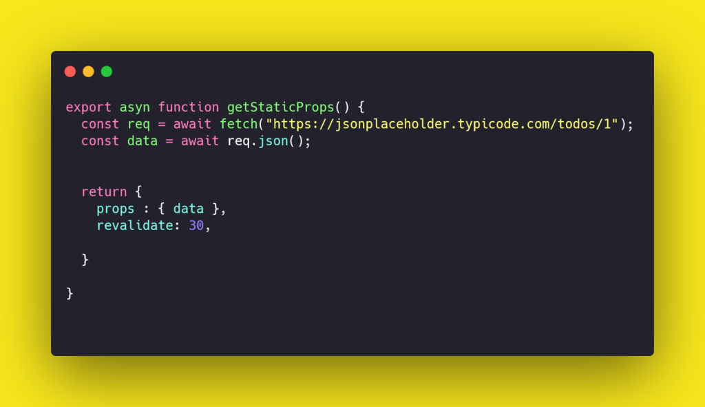 The ISR strategy makes web pages more scalable and high performant. by using this strategy we can provide basic data for the user at the time the users visit the page and then within the particular time interval, we can re-generate the components. for this, we use the same function that we used for the SSG which is getStaticProps().
