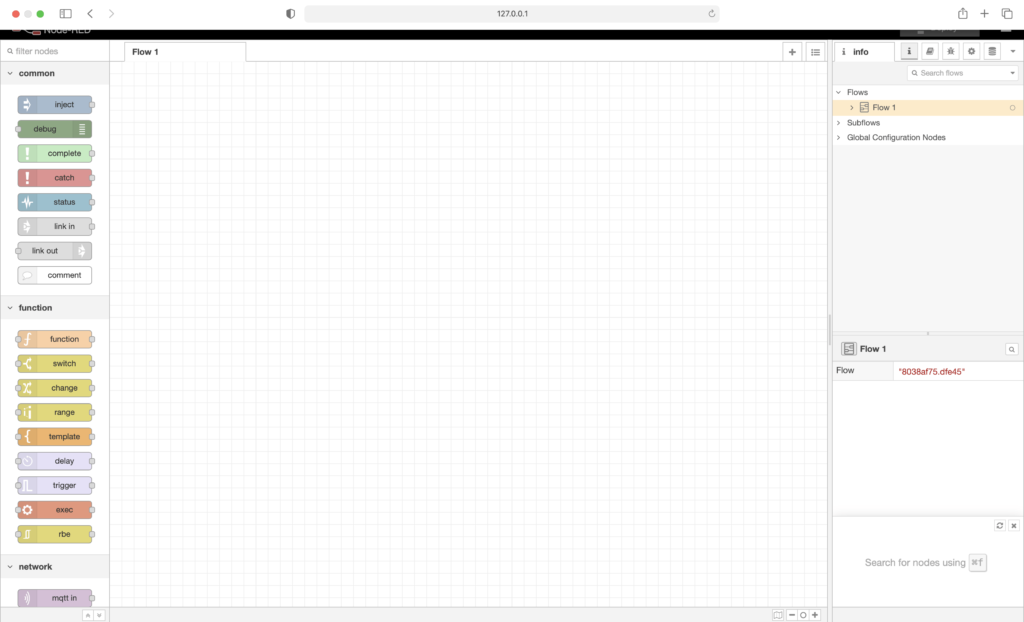 - On opening http://127.0.0.1:1880/
