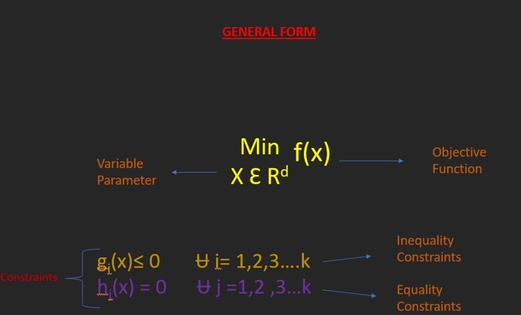 Let’s see the general form of equation we use to solve a problem to get best results using optimization.