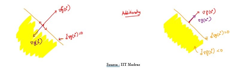 Suppose we have an Objective function named f(x) such that x Ɛ Rd and constraint g(x)≤0. Now to find an optimal point x*