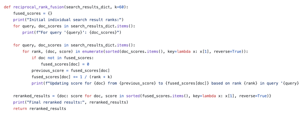 Here k is the number of words in the documents. You can refer this github link for the entire code implementation of RAG-FUSION concept.