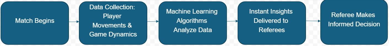 Machine Learning Algorithms: Supervised learning models analyze the collected data to identify patterns and make predictions. For instance, algorithms can classify situations—like fouls or offside positions—using historical match data, training them on thousands of prior instances.