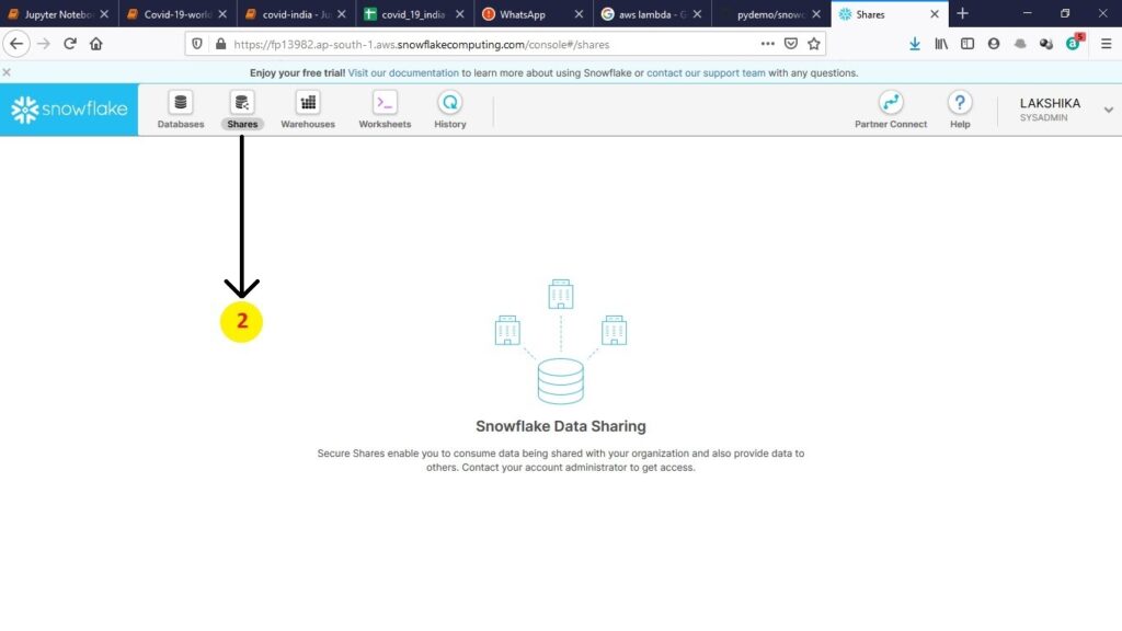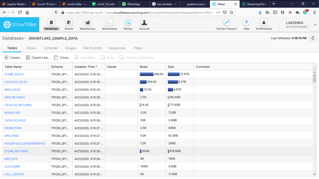 All data in Snowflake is stored in the Database. The database is a logical grouping of objects such as tables and views organised in the schema. The database page displays information about the database we have created and have the privilege to access it.