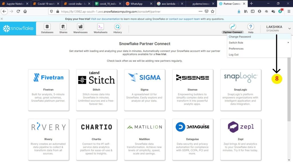 - Third-party connectors that can be used to connect applications such as ETL tools (e.g. Informatica, Talend) and BI tools(e.g. Kafka, Spark) to Snowflake.