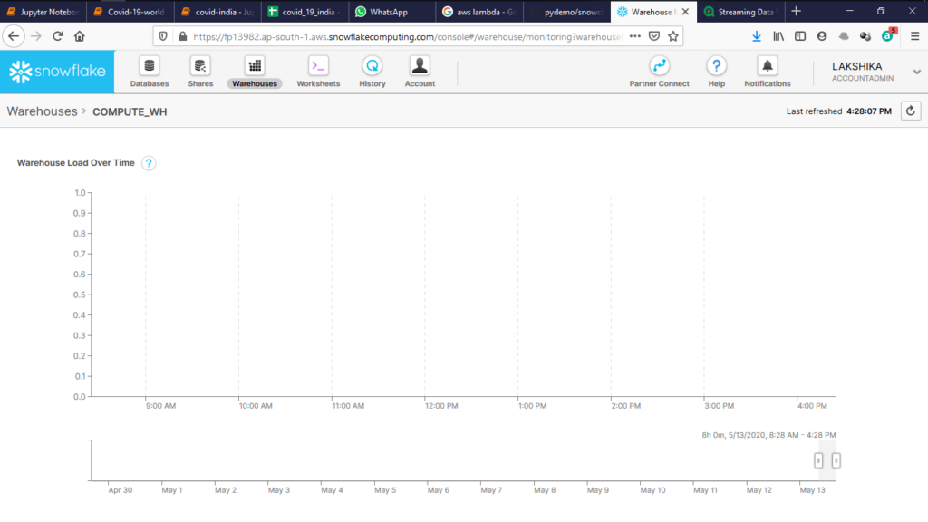 By clicking on the warehouse we get the graphical view of the query load on the warehouse over the last 14 days