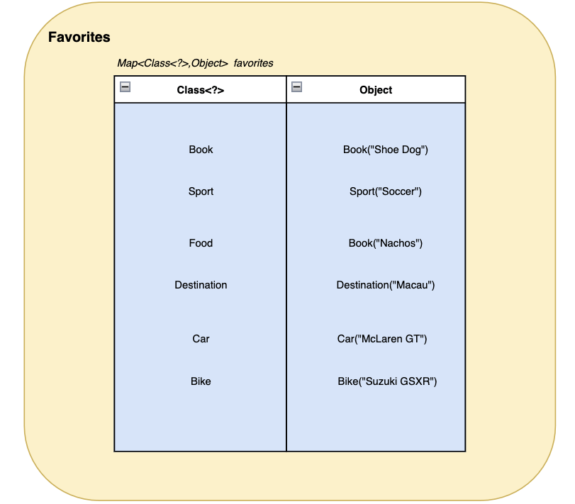 private Map<Class<?>, Object> favorites = new HashMap<>();