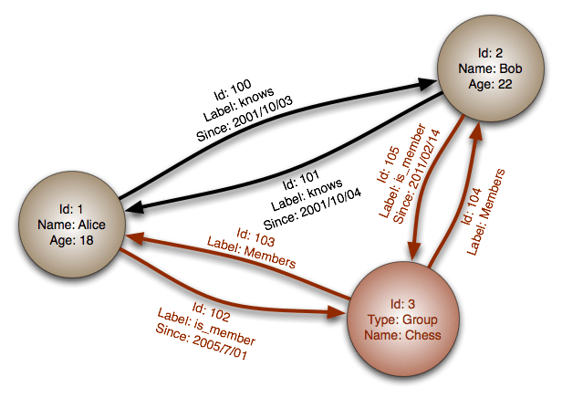 - Properties are information associated to nodes. For example, if Wikipedia were one of the nodes, it might be tied to properties such as website, reference material, or words that starts with the letter w, depending on which aspects of Wikipedia are germane to a given database.