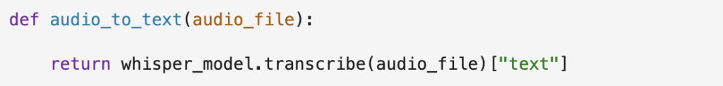 b) Transcription of the mp3 files: In this step, we will use Open-ai’s whisper model to transcribe the mp3 files. In the data frame now, we have the video link, audio file address and the transcription of the audio file.